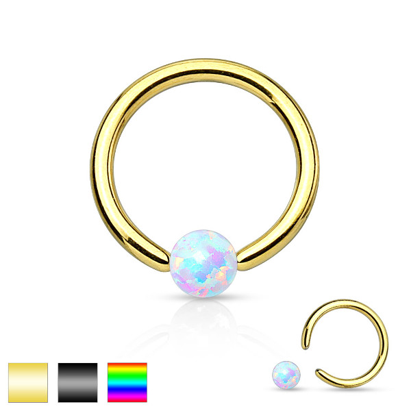 Кольцо из хирургической стали 316L с титановым анодированием и черным PVD покрытием. Шарик из лабораторного опала.