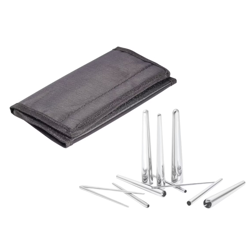 Профессиональный набор растяжек (таперов) из 316L стали в чехле, 13 размеров: 1, 1.2, 1.6, 2, 2.5, 3, 4, 5, 6, 7, 8, 9, 10мм.
