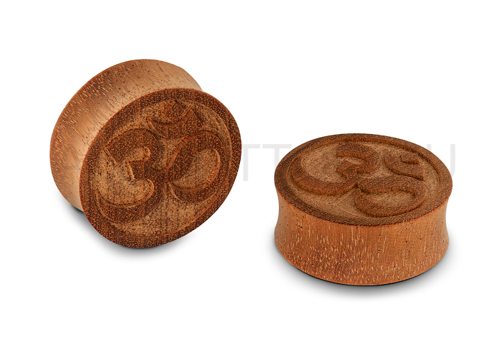 Плаги ручной работы от Carlo & Son из дерева сапеле с лазерной гравировкой символа Ом.
