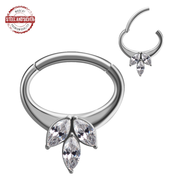 Миниатюрный кликер из хирургической стали 316L с тремя прозрачными фианитами.