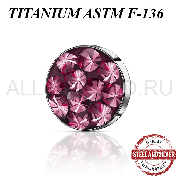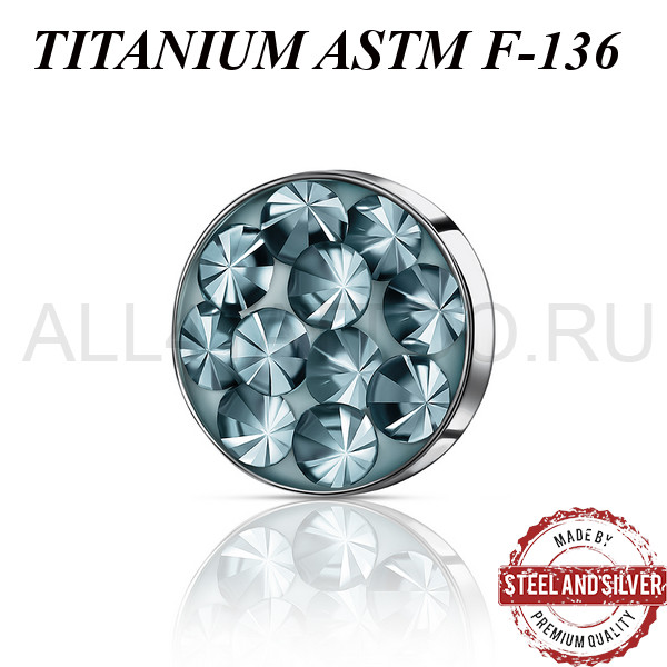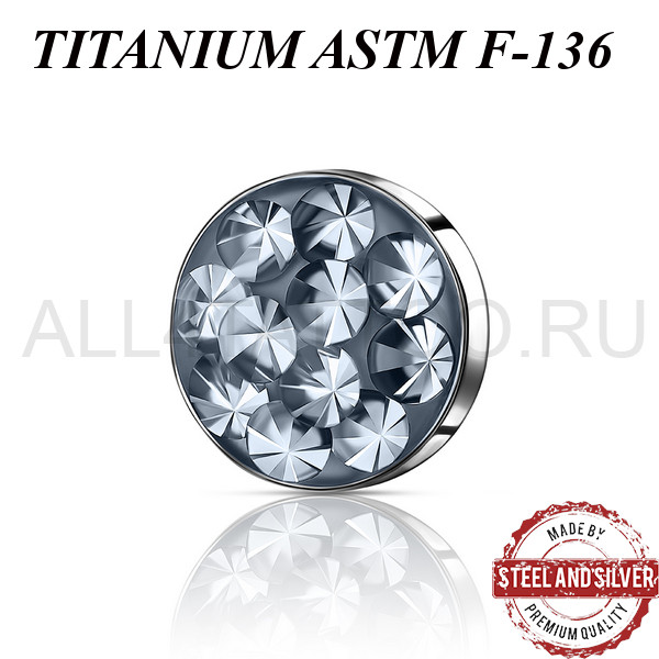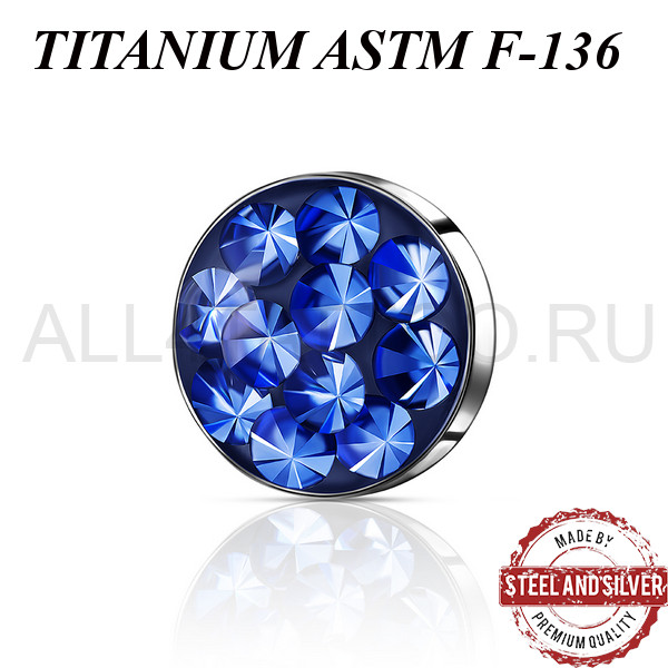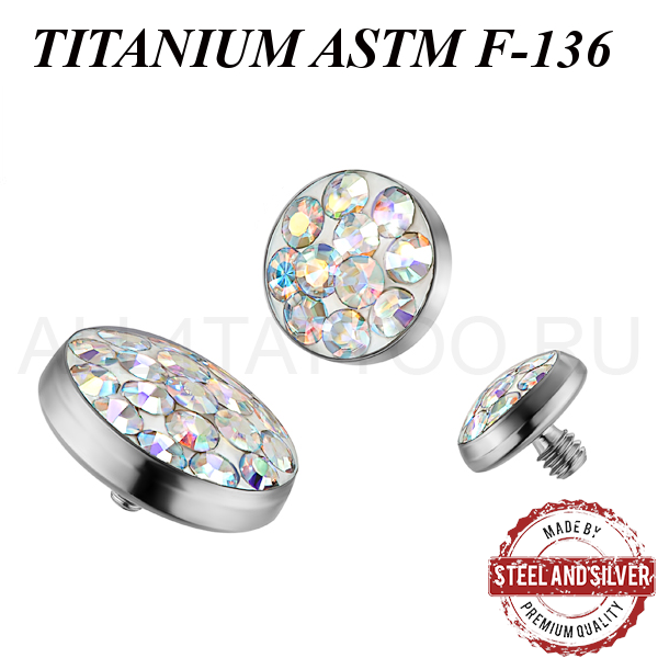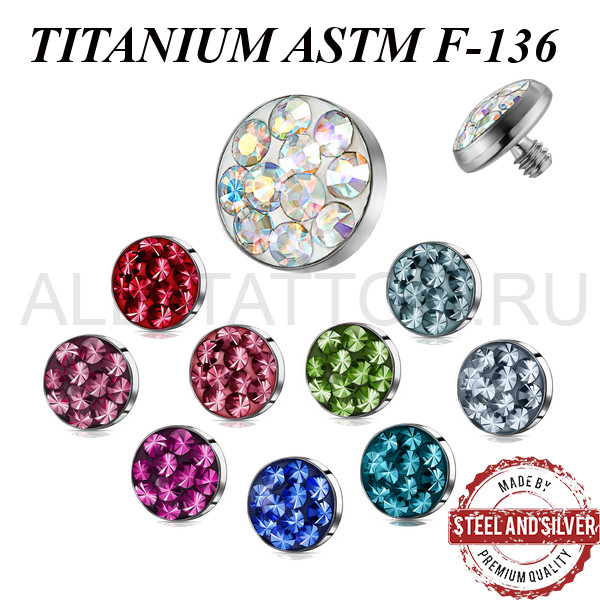 Накрутка из имплантационного титана ASTM F-136. Украшена премиальными кристаллами. Резьба накруток 1,2мм подходят к микродермалам и украшениям с внутренней резьбой толщиной 1,6мм.