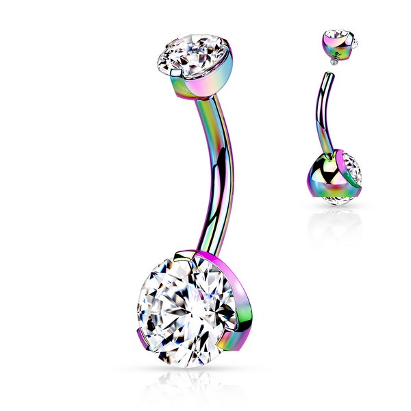 Банан их хирургической стали 316L с титановым IP покрытием. Украшен двумя прозрачными кристаллами в лапках, нижний страз диаметром 8 мм.