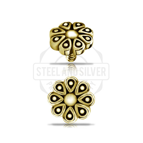 Накрутка из хирургической стали 316L с PVD покрытием жёлтого золота. Диаметр декоративной части - 6мм. Резьба накруток 0,8мм подходят к украшениям толщиной 1,2мм с внутренней резьбой.