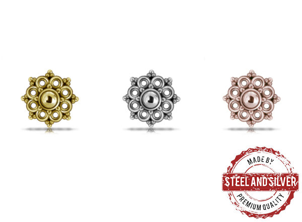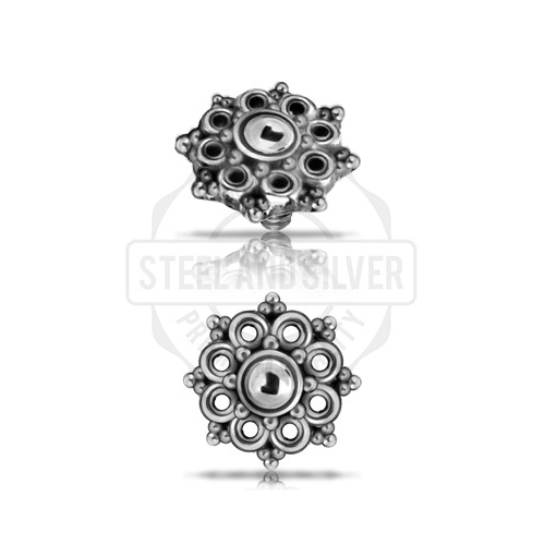 Накрутка из хирургической стали 316L. Диаметр декоративной части - 6мм. Резьба накруток 0,8мм подходят к украшениям толщиной 1,2мм с внутренней резьбой. Представлены также вариации с PVD покрытием жёлтого и розового золота.