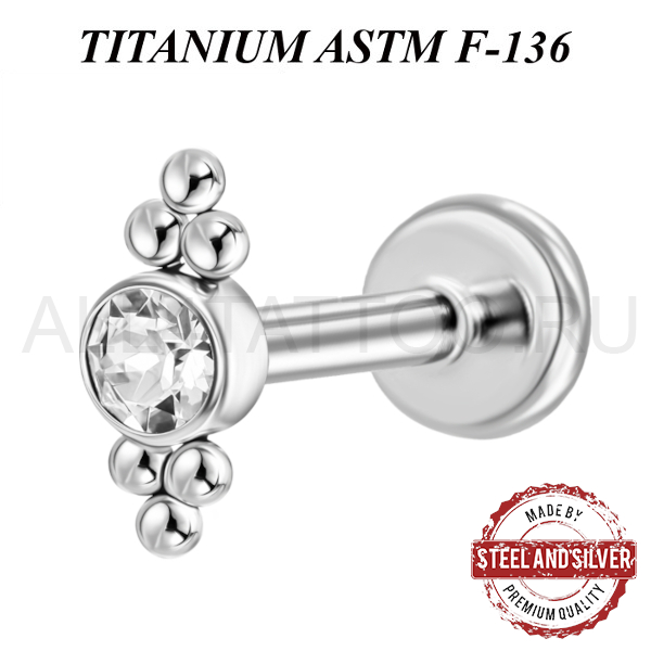 Лабрет из имплантационного титана 6Al-4V-Eli ASTM: F-136 с внутренней резьбой. Украшен кристаллом Premium Crystals диаметром 4мм.