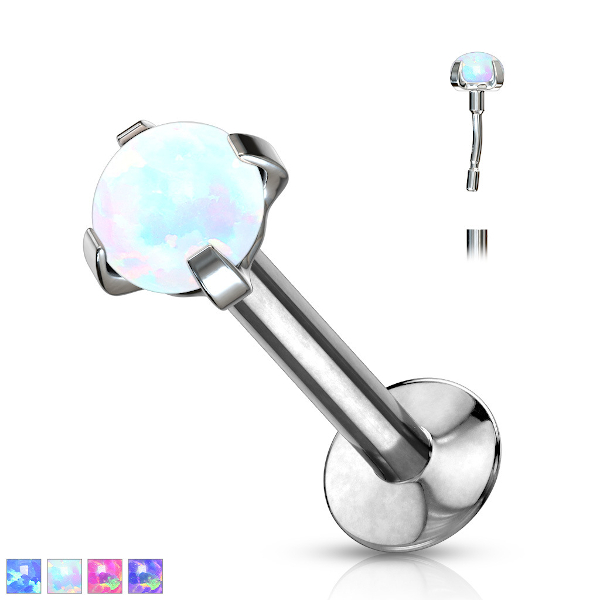 Безрезьбовой лабрет из хирургической стали 316L с кабошоном из искусственного опала.