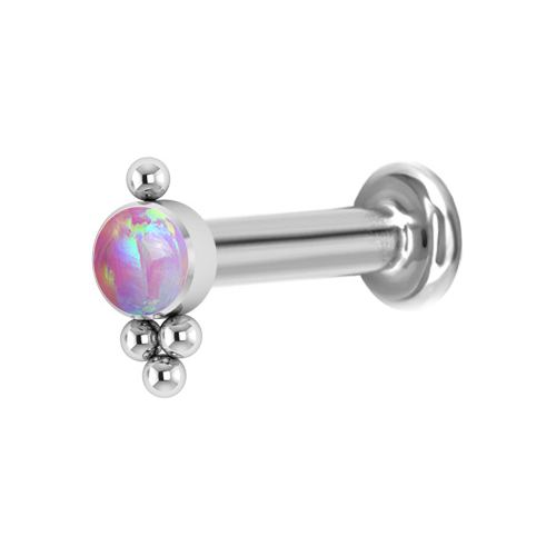 Лабрет из имплантационного титана 6Al-4V-Eli ASTM: F-136 с внутренней резьбой. Украшен искусственным опалом диаметром 3 мм.