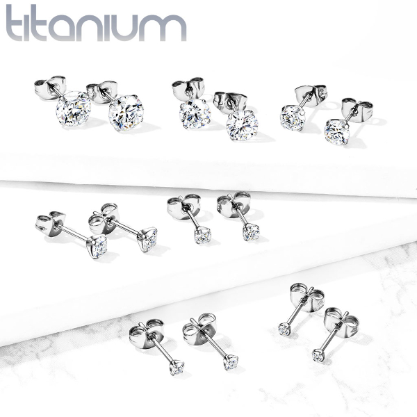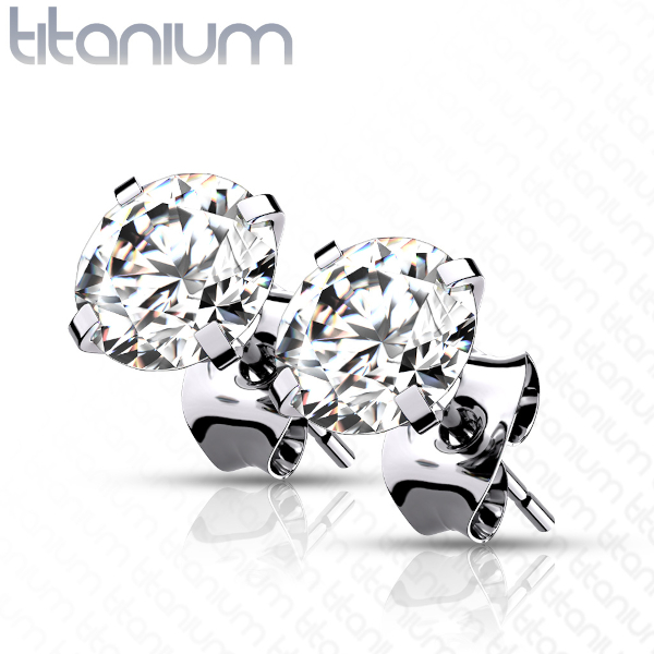 Серьги из имплантационного титана 6Al-4V-Eli ASTM: F-136, украшены фианитами. В таблице указан диаметр кристалла.