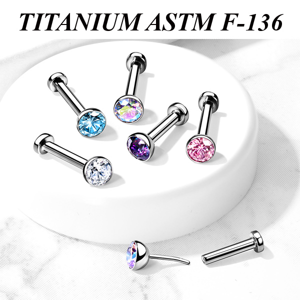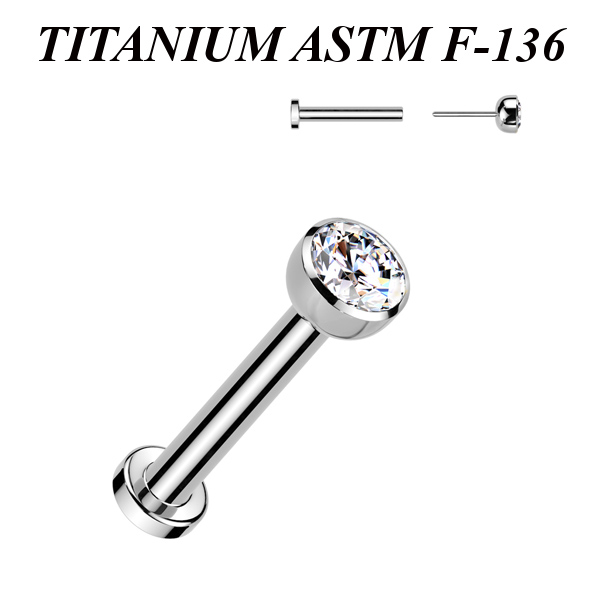 Безрезьбовой лабрет из имплантационного титана 6Al-4V-Eli ASTM: F-136. Украшен вставкой с фианитом.