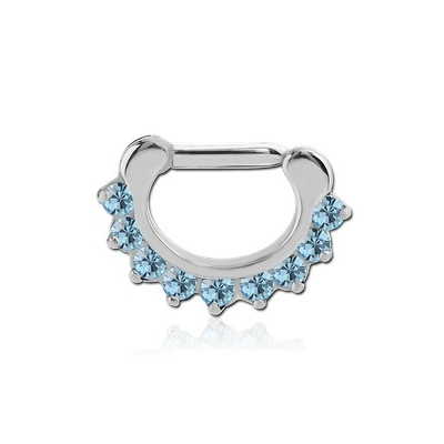 Кликер для септума из хирургической стали 316L, с декоративной частью украшенной девятью кристаллами.