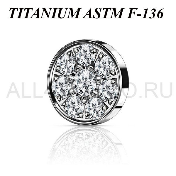 Накрутка из имплантационного титана 6Al-4V-Eli ASTM: F-136 с сетом прозрачных фианитов. Подходит для украшений с внутренней резьбой.