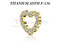 Накрутка из имплантационного титана 6Al-4V-Eli ASTM: F-136 в форме сердца, украшенного прозрачными фианитами. Представлена в двух вариантах: классическая титановая и с золотым PVD покрытием. Размер накрутки: 7х6,5мм. Подходит для украшений с внутренней резьбой толщиной 1 и 1,2 мм.
