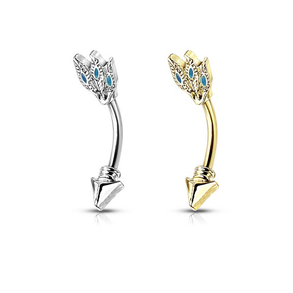 Микробанан из хирургической стали 316L с родированными накрутками из латуни из в виде стрелы. Внешняя резьба.