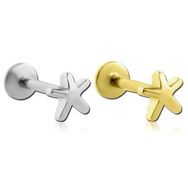 Лабрет из хирургической стали 316L с внутренней резьбой. Представлен в двух вариантах: классический стальной и с PVD покрытием ZIRCON GOLD.