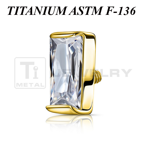 Накрутка из имплантационного титана 6Al-4V-Eli ASTM: F-136 с золотым PVD покрытием и прозрачным фианитом. Размер накрутки: 2х4,5мм. Подходит для украшений с внутренней резьбой толщиной 1 и 1,2 мм.