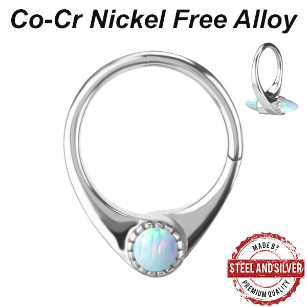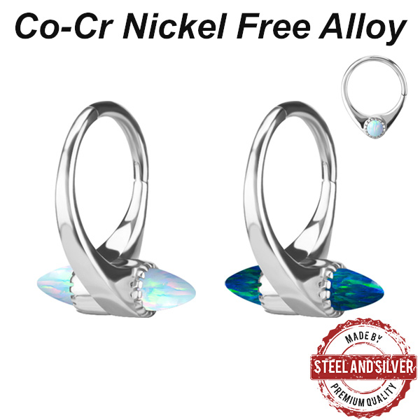 Кликер из сплава кобальт-хрома, без содержания никеля. Украшен пиками из лабораторного опала. Размер пики: 3х3мм.