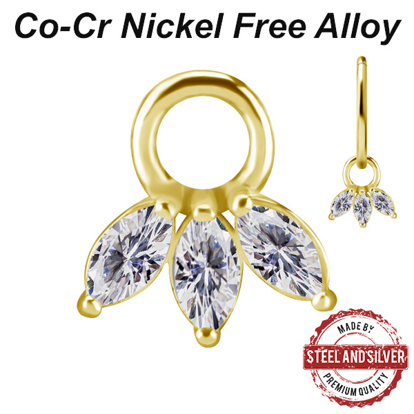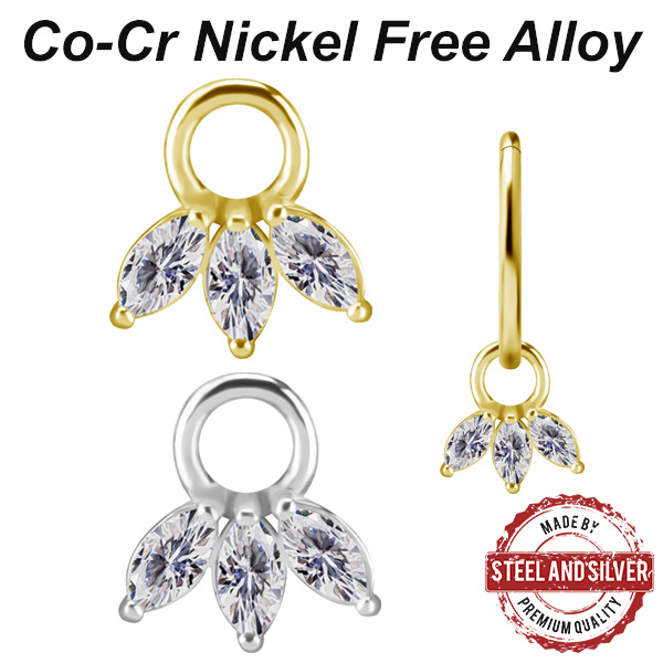 Подвеска из сплава кобальт-хрома, без содержания никеля. Украшена кристаллами Premium Cubic Zirconia. Подходит для колец толщиной не более 1,6мм. Размер: 6,2х6,5мм. Представлен так же вариант с 18-ти каратным золотым PVD покрытием.