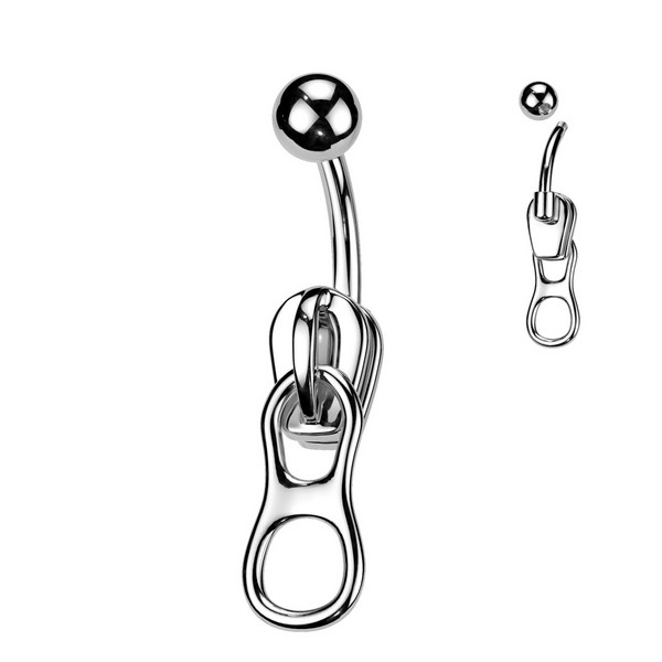 Банан фигурный из хирургической стали 316L в виде застежки от молнии из родированной латуни.